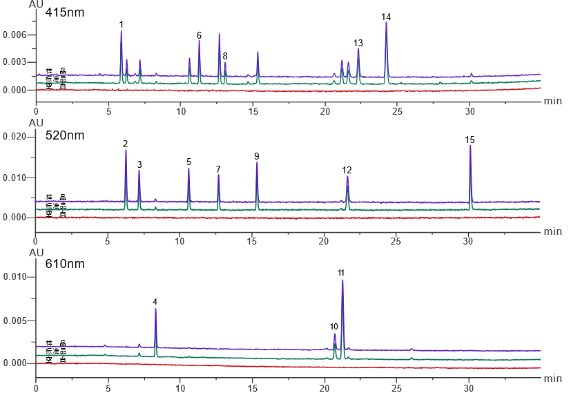 檢測波長:DAD@415 nm、520 nm、610 nm