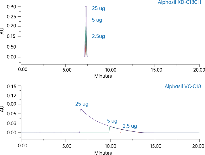 · 出色的堿性化合物峰形,大載量堿性化合物依然具有優(yōu)勢(shì)峰形;