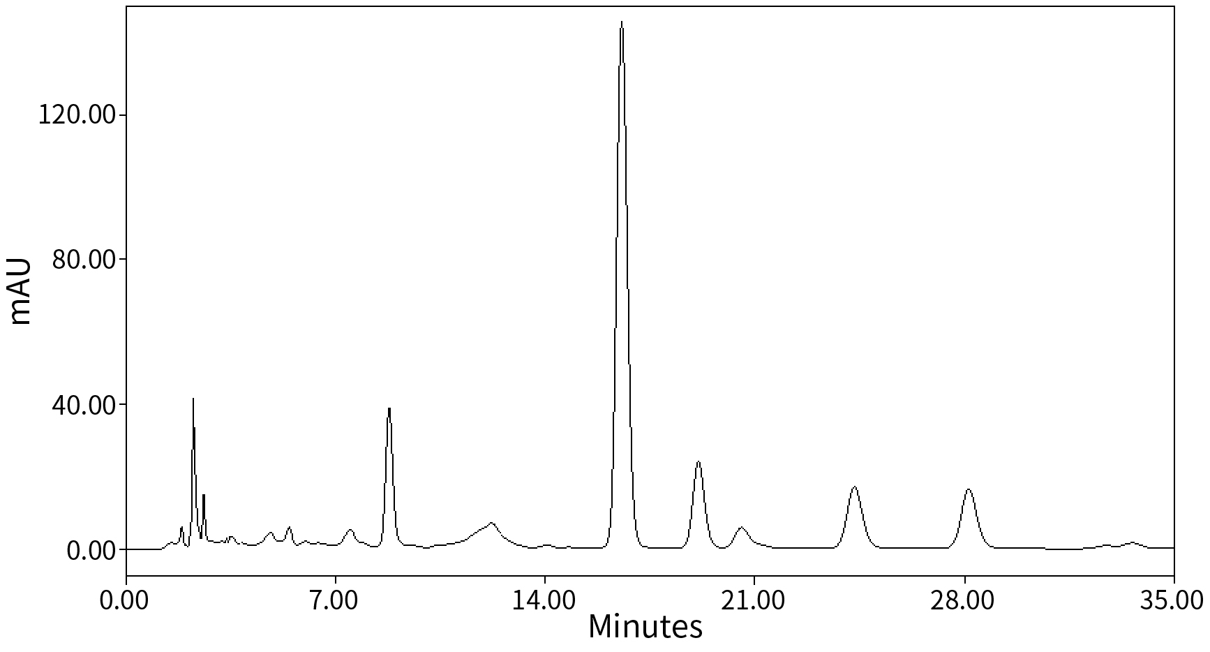 摘要:本文參照2020版《中國藥典》,采用全多孔色譜柱Alphasil VC-C18,對葛根供試品進行分析,結果顯示,葛根中目標峰峰形良好,葛根素目標峰理論塔板數大于4000,符合《中國藥典》要求。本方案可為葛根中葛根素的測定提供參考。